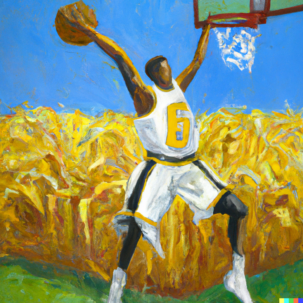 - A healthy dose of AI generated art as I figure out image licensing. For example, here's a picture of a basketball player dunking in a cornfield because... well you get it.