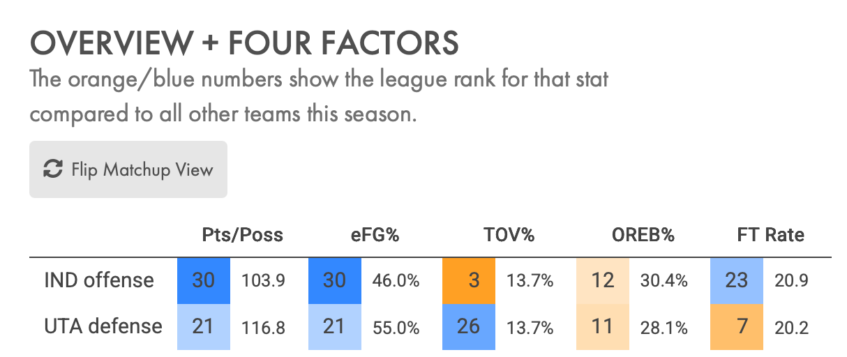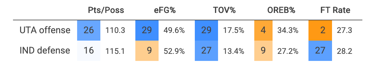 The undermanned Pacers rank last in PPC scored out of drives and currently have the worst eFG% on shots in the RA (58.5%) of any team in the last 11 seasons.