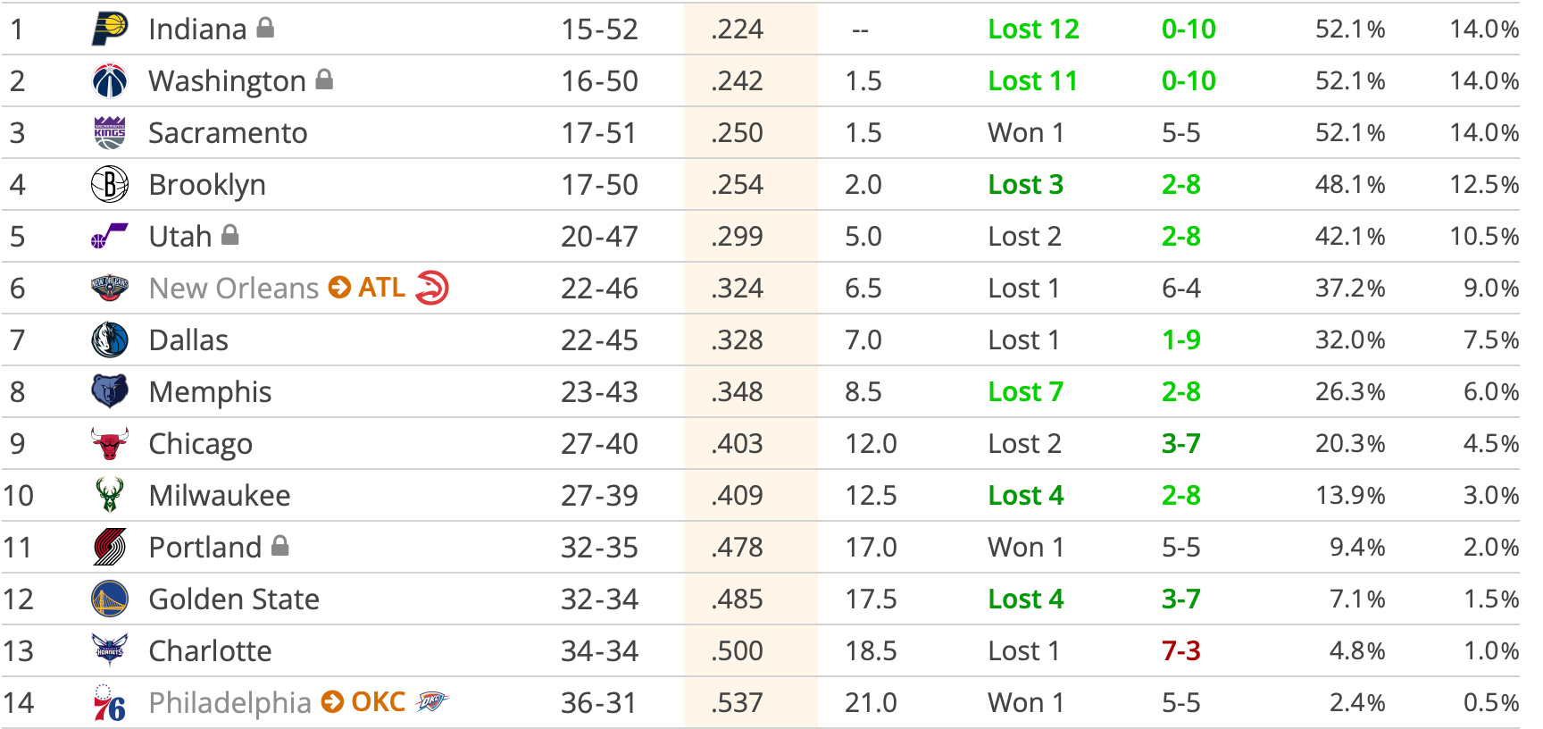 The Pacers will be rolling out a starting lineup that could have made a fortune on a prediction website. I like that they are getting creative in their tanking strategy. Carlisle and his staff really are amazing at whatever they put their minds to.