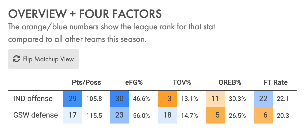 Golden State will be without Steph Curry, who is ill, while the Pacers will be missing Pascal Siakam and Aaron Nesmith. Indy didn't arrive at the hotel until after 1 AM local time last night and, as Caitlin details below, Siakam is being worked like a rented mule this season. It makes sense Carlisle is giving him a breather tonight. Nesmith has a "forearm contusion" but that sounds like a fancy way to say "rest" to me.