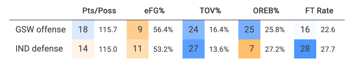 We know the Warriors fairly well. Hell, they represent the 1 in our 1-8 record. Golden State is a pretty average team, despite its star power. They sit at 5-5 on the year and are in the middle of pack in points-per-possession on both sides of the ball.