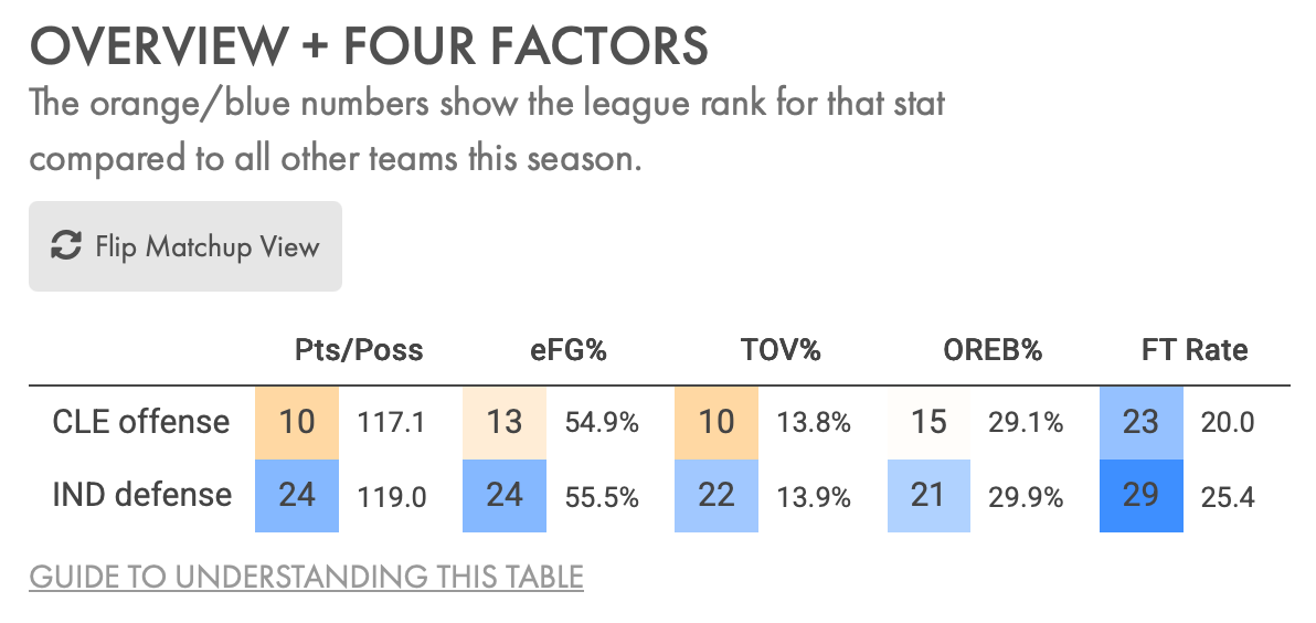 The Cavs are 5-5 over their last 10 but went 3-1 on their recent western road trip. As we've come to expect from them, they are very good on both sides of the ball and have no glaring weaknesses. In the past, the Pacers have been able to beat them with pace but I'm not sure that favors us tonight. We'll just need to play solid, mistake-free basketball and hope that we catch some breaks.