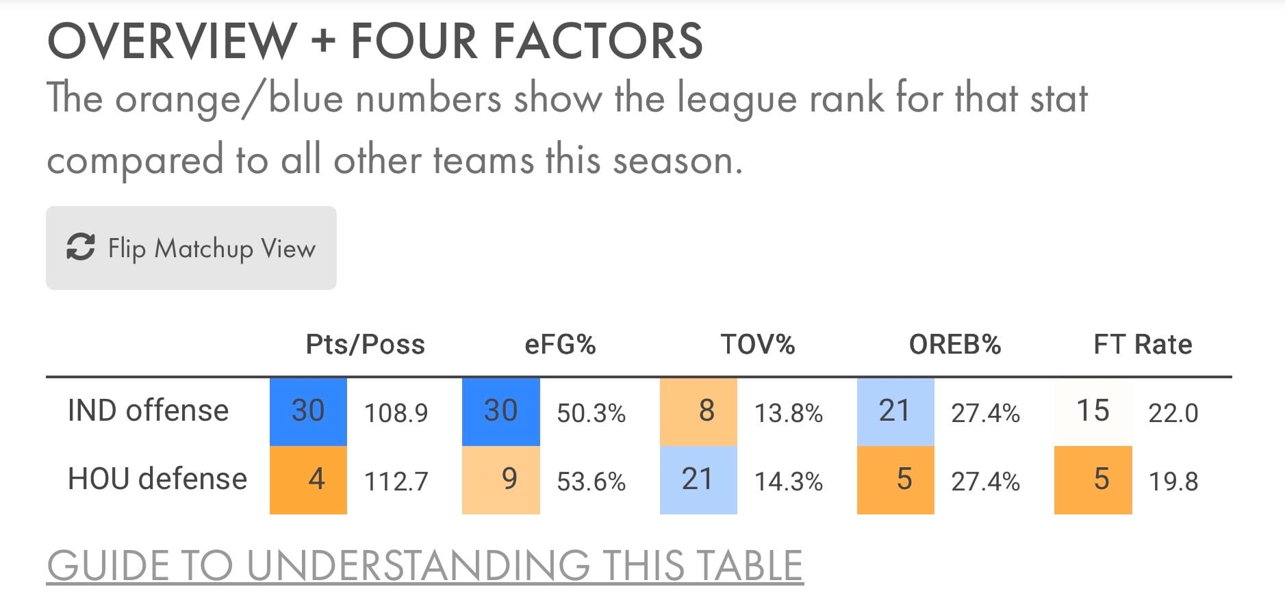 Luckily, the Rockets are only 3-4 over the past two weeks, so the Pacers might be able to catch them off guard (as improbable as that seems).