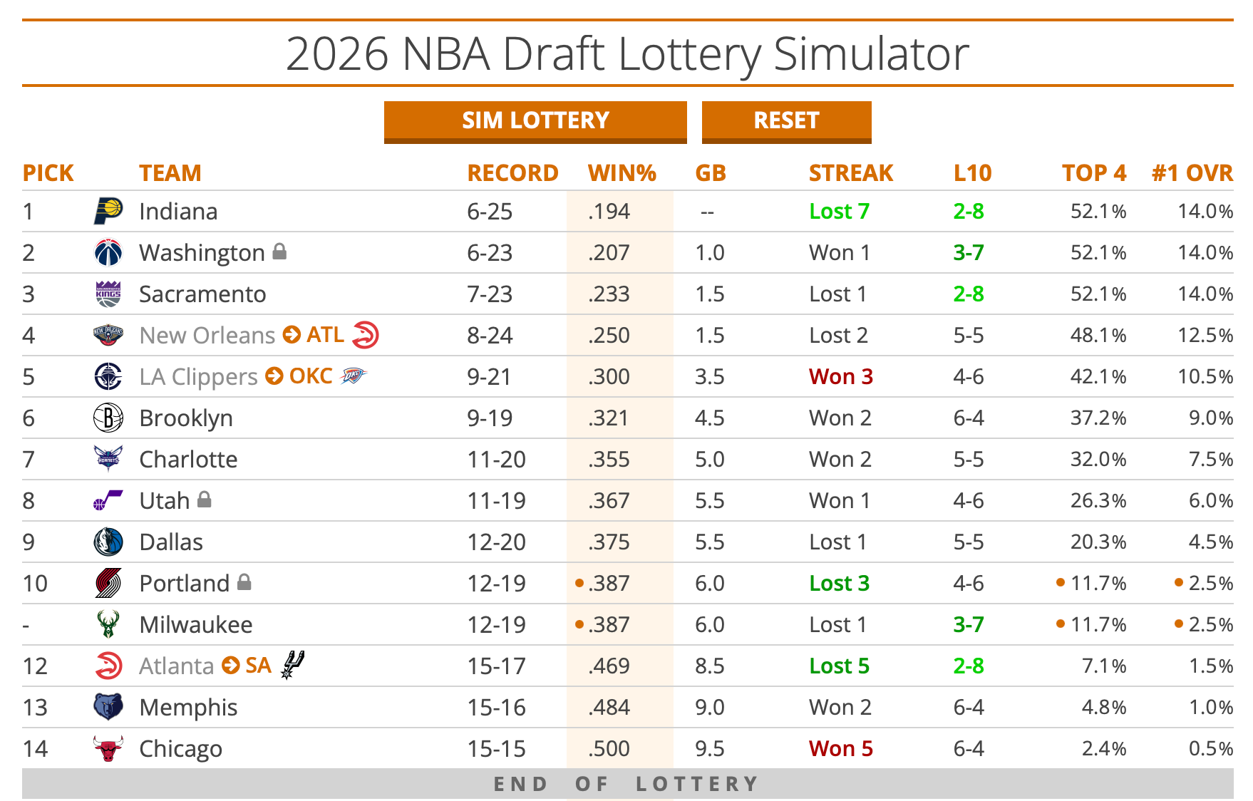A picture says a thousand words. The one below, with its bright green tankathon formatting, communicates everything you need to know about the season for the Pacers.
