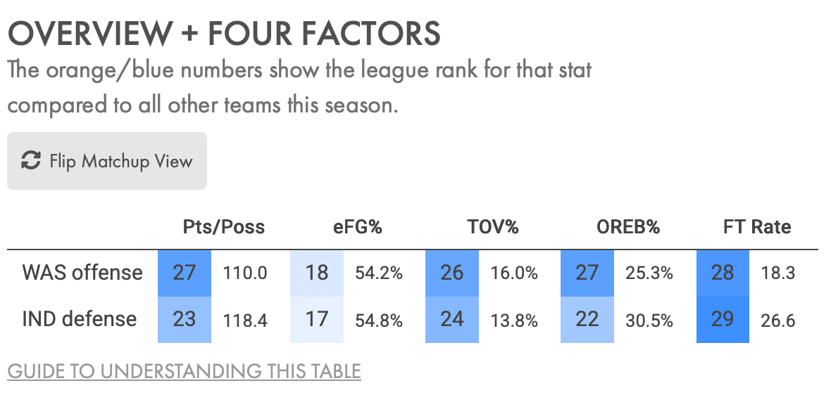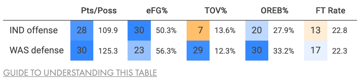 Look at all that icy blue in the graphic. I love when a chart matches the weather outside. Though the Pacers have been terrible offensively for the year, they've been decently efficient over the past two weeks (last game notwithstanding). Over that stretch, they've scored about 119 points per 100 possessions, good for 11th in the league.