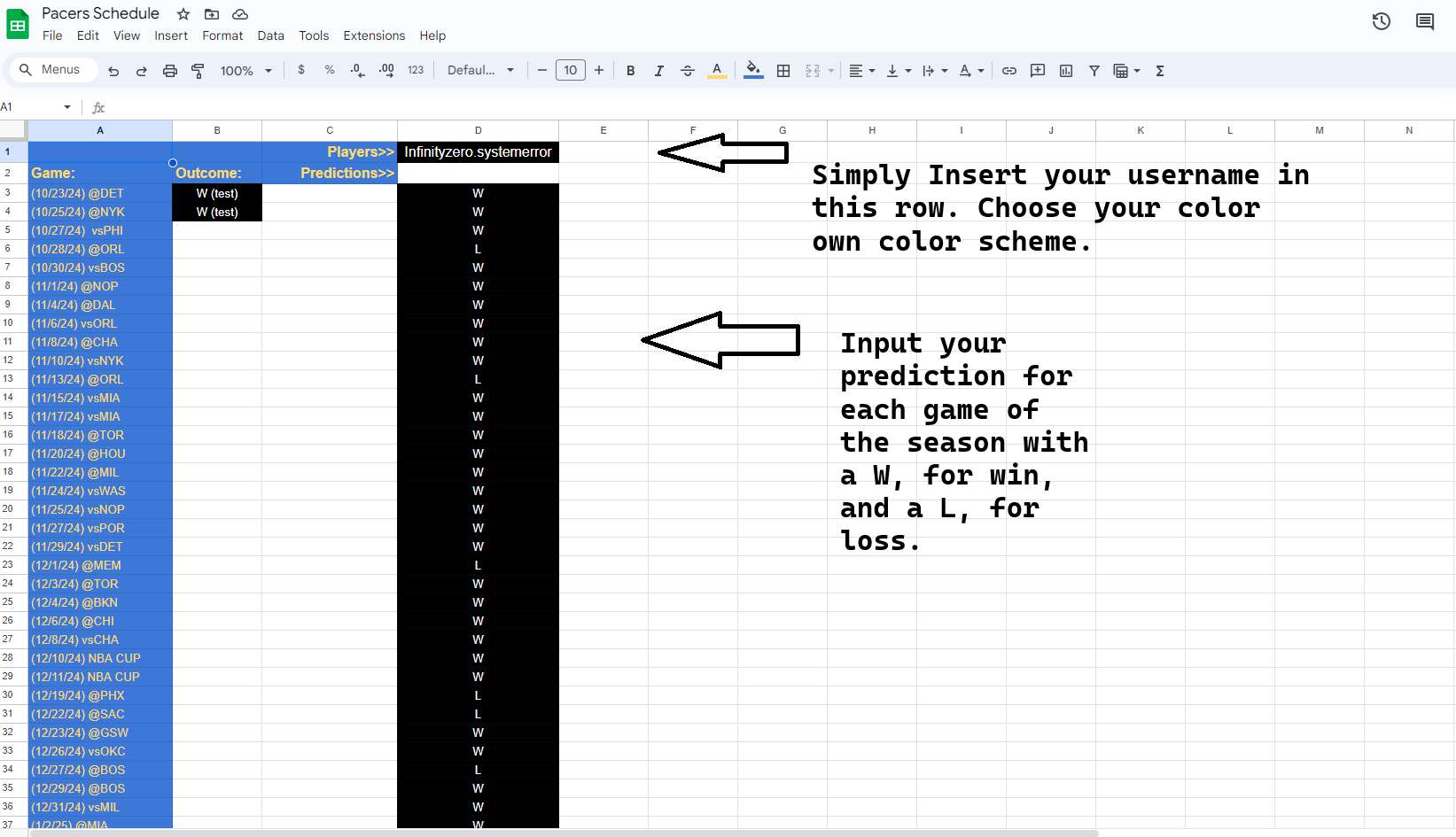 This year the Prediction Tournament will be slightly different than the previous season but let's first talk about what will remain the same. Anyone who wants to participate simply needs to follow the instructions in the next image and go to the provided google sheet (link will be below). The sheet will be open until October 21 at 10 PM EST at which point I will close the sheet to everyone else, SO IF YOU WANT TO PLAY GET IT IN BEFORE THEN. Your total predicted wins will be updated automatically just after the last game in the schedule if you want to check how many wins you have predicted. I will check the sheet regularly so if problems arise I should see it but if you want to bring my attention to it you can leave a comment here on TWOAHH.